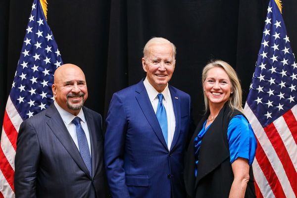 Finance Chairman Chris Korge listening to Pres. Biden, with Pres. Obama and long time friend Pres. Clinton